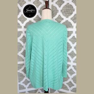 Alfred Dunner Women's Mint Green Silver Threading Chevron Open Cardigan Size XL