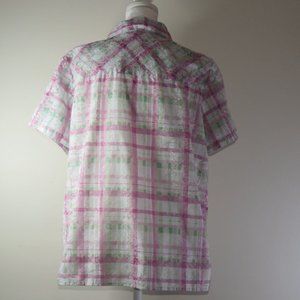 Alfred Dunner Women's Short Sleeve Mother of Pearl Button-Down Blouse 55% Algodon Cotton Size 12 (C536)