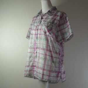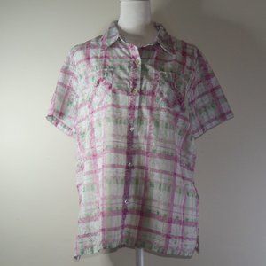 Alfred Dunner Women's Mother of Pearl Button-Down Blouse Algodon Size 12 (C536)