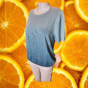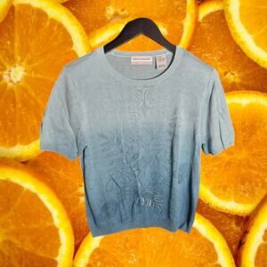 Alfred Dunner Women's Peacock Beaded Short Sleeve Knit Pullover Top Size PL