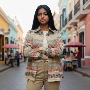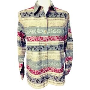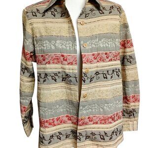 Alfred Dunner Womens Petite 8P Blazer Jacket Brown Rust Cream Fall Floral Stripe