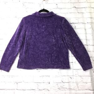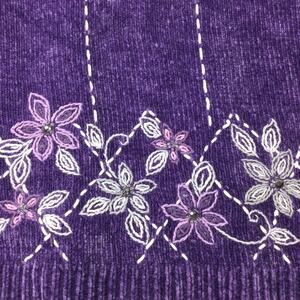 Alfred Dunner Women's Petite Grandmacore Embroidered Pullover Purple Sweater PL