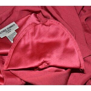 This stylish Alfred Dunner blouse features a flattering V-neck and 3/4 sleeves, perfect for office or casual wear. The pink hue and side slits add a touch of elegance to your wardrobe.