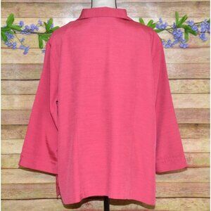Alfred Dunner Womens Pink Button Up 3/4 Sleeve Blouse Top Plus Size 20W Career