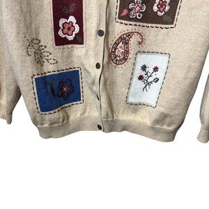 Alfred Dunner Womens Plus Size 2X Beige Cardigan With Floral & Paisley Embroider