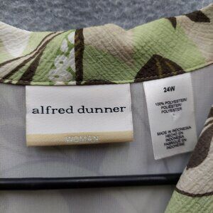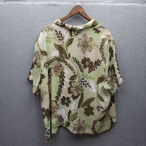Alfred Dunner Womens Plus Size Floral Print Blouse 24W Green & Brown Polyester S