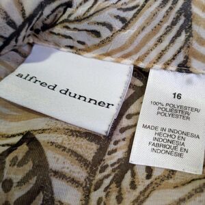 Alfred Dunner Women's Plus Sz 16 Sheer Button Down 3/4 Sleeve Leaf Print Top