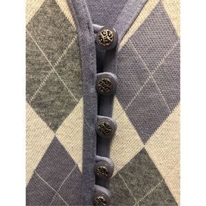 Alfred Dunner Women’s Purple and Gray Argyle 2 Piece Look Cardigan Sweater with