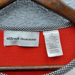 Alfred Dunner Womens Red Embroidered Cardigan Sweater With Contrast Trim Size M