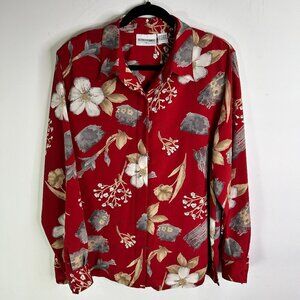 Alfred Dunner Women's Red Floral Button Down Blouse Size 16