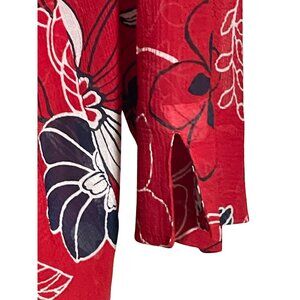 Alfred Dunner Womens Red Floral Button-Up Blouse Size 14 C-6-103-0