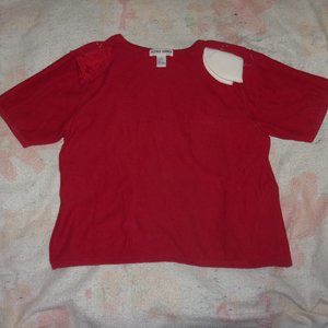 Alfred Dunner Women's Red Flower Embroidered Padded Cardigan Sweater Size Large