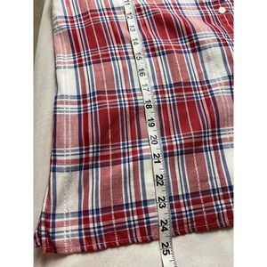Alfred Dunner Women's Red Plaid 3/4 Sleeve Button Front Top Floral Beading 14P