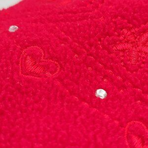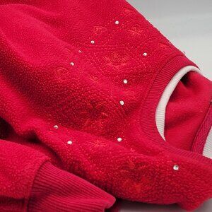 This sweater offers a comfortable fit with soft fleece fabric, featuring rhinestone embellishments and embroidered detailing for a touch of elegance. For the holidays