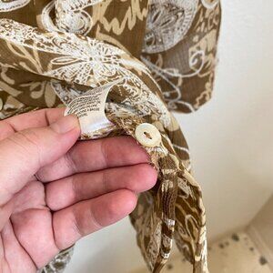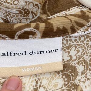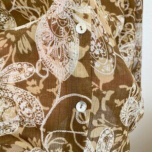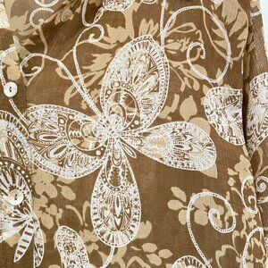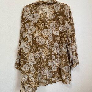 Alfred Dunner Women's Sheer Brown Cream Butterfly Floral Button Front Blouse
