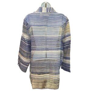 Alfred Dunner Womens Sheer Button Up Shirt 18 Striped Blue White Lightweight