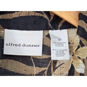 Alfred Dunner Womens Shirt Black Tan Floral 12 Woven Fabric Semi Sheer Tropical