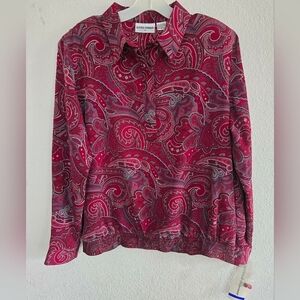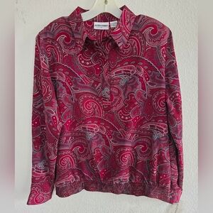Alfred Dunner Womens Shirt Sz 16 Paisley Long Sleeve Abstract Popover Artsy