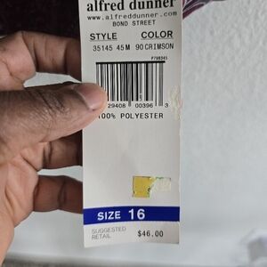 This Alfred Dunner women's shirt in size 16 features a unique paisley pattern with an abstract and artsy design. The shirt has a collared neckline, long sleeves with an elastic hem, and a button closure. Made of lightweight chiffon material with a breathable polyester fabric, this blouse is suitable for all seasons and occasions, such as travel, casual outings, workwear, or business settings. The colorful and bohemian Western theme adds a touch of y2k flair to this classic and vibrant piece.