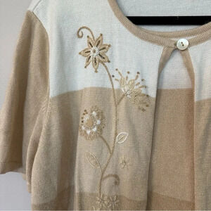 Alfred Dunner Women’s Short Sleeve Brown & White Floral Sweater Size XL GUC