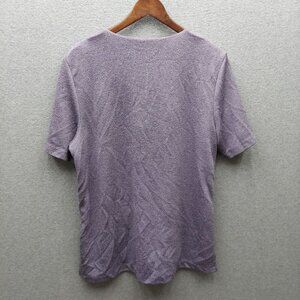 Alfred Dunner Womens Short-Sleeve Purple & Black V-Neck Top M