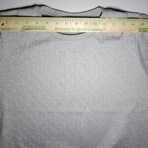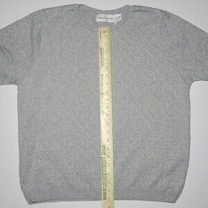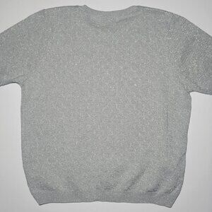 Alfred Dunner Womens Silver Sparkle Short Sleeve Sweater Blouse Size Large