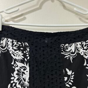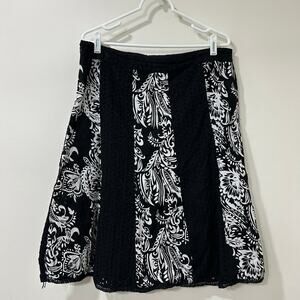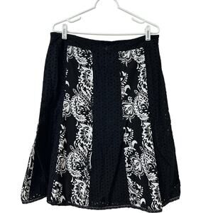 Alfred Dunner Womens Size 12 Black & White Floral Eyelet Lace Midi Skirt