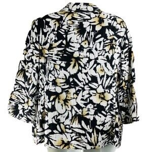 Alfred Dunner Womens Black and White Floral Pattern Lined Jacket Size 12