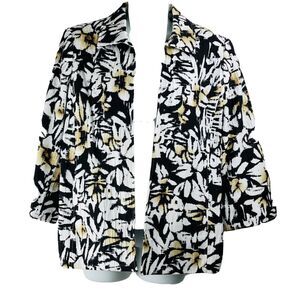 Alfred Dunner Women’s Size 12 Black White Floral Pattern Lined Open Front Jacket