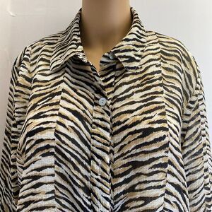 Alfred Dunner Womens Size 14 Animal Print Button Up Shirt Lined 3/4 Sleeve Used
