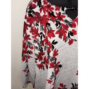 Alfred Dunner Womens Size 1X Knit Blouse Top Long Sleeve Floral Fall Gray