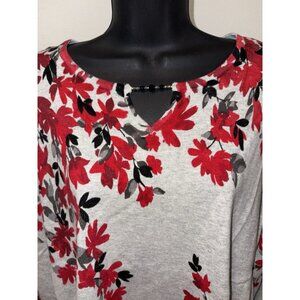 The Alfred Dunner Women's Size 1X Top with long sleeves in a gray with black and red floral print pattern is a stylish and comfortable addition to any wardrobe. Made from 100% cotton, this Regular fit top is perfect for various occasions including travel, parties, casual outings, or workwear. The classic/fitted sleeve design and round neckline with a beaded keyhole accent, make it versatile for fall and winter seasons . Easy to care for with machine washable instructions, this designer top is a must-have for any woman looking for a chic and practical piece. Pit to pit measures 23 inches, shoulder to waist 24 inches. Preowned excellent condition. Thanks for looking, feedback is appreciated. Visit our store for more bargains, and unique items. If you have any issues with your purchase, please contact us as soon as possible so we can make it right.