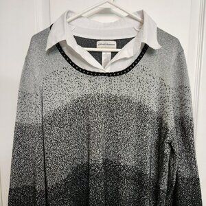 Alfred Dunner Womens Size 1X Pointelle Two for One Sweater NEW Silver Metallic