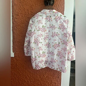 Alfred Dunner Womens Size 6Petite Pink Floral Button Up Blouse Top Spring