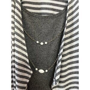 Alfred Dunner Women’s Size L Gray & White Stripe 2-Piece Top with Necklace