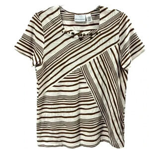 Alfred Dunner Women's Size Small Brown Striped Embellished Top