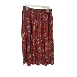 Alfred Dunner Womens Skirt Size 16 Red Floral Print Midi Pleated Pull On