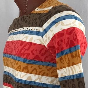 Alfred Dunner Women's Small Colorful Print Stud Detail Top Blouse