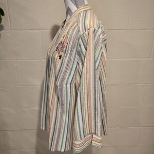Alfred Dunner Women's Striped Embroidered Button-Down 20 W Colorful 3/4 Sleeve.