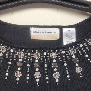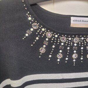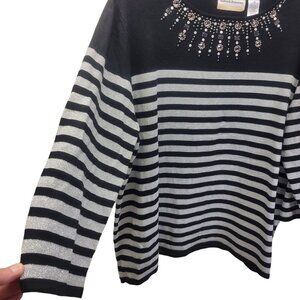 Alfred Dunner Women's Striped Shimmer Silver Black Rhinestone Sweater Size 1X