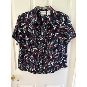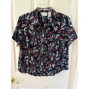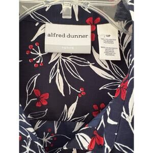 Alfred Dunner Women’s Sz 12P Dark Blue, Red, White Print Short Sleeve Blouse