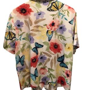 Alfred Dunner Womens Sz 16 Floral Butterfly Print Short Sleeve Blouse