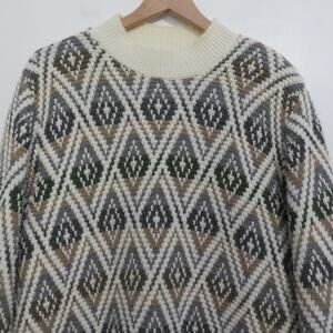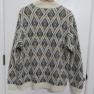 Alfred Dunner Womens Sz L Cream Green Tan Diamond Knit Sweater Made in the USA