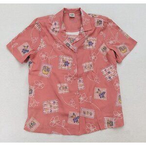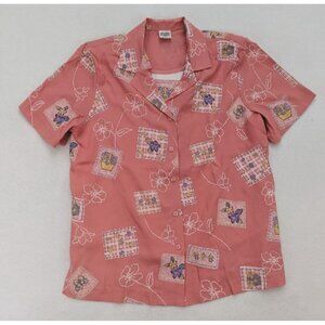 Alfred Dunner Women's Top Size 12 Pink Floral Print 2-For Button-Up