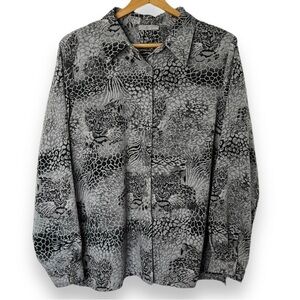 Alfred Dunner Women’s Top Size 16 Leopard Face Jungle Print Button Up