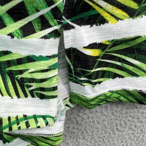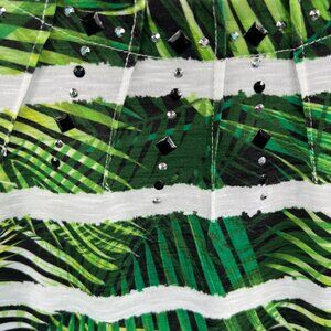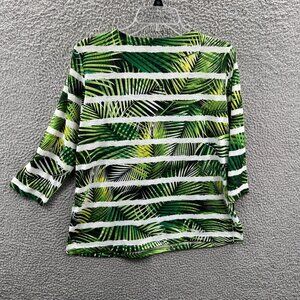Alfred Dunner Womens Top Small Petite Green White Striped Fern Print Shirt