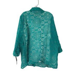 Alfred Dunner Women's Turquoise Buttoned Down Top