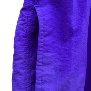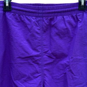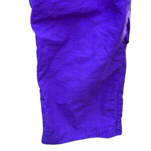 Vibrant violet purple color, pockets, straight legs, elastic and drawstring waist, high waist, 1990s, nylon material.