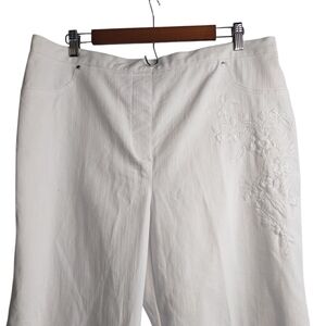 Alfred Dunner Women's White Embroidered Stretch Capri Jeans Pants Sz 16W NWT