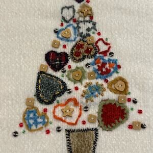 This ivory sweater features an intricately embroidered tree, perfect for the holiday season.